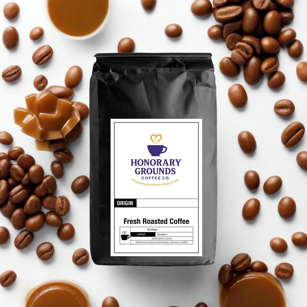 The all natural sweet buttery caramel flavor on this medium roasted coffee is fantastic alone or as the base for your blended drinks.